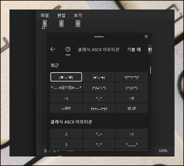글쓰기 중 감정 표현이 필요할 때 특수기호 외에도 이모지 메뉴를 활용해보세요. 검색 기능으로 원하는 표현을 쉽게 찾을 수 있어요. 텍스트만으로는 전달하기 어려운 뉘앙스를 이모지 하나로 효과적으로 나타낼 수 있어요. 혹시 "한자키"를 눌렀을 때 이모지가 나오지 않는다면 "윈도우키"와 "V"를 눌러보세요. 그럼 컴퓨터에서 이모지를 사용할 수 있을 거에요.