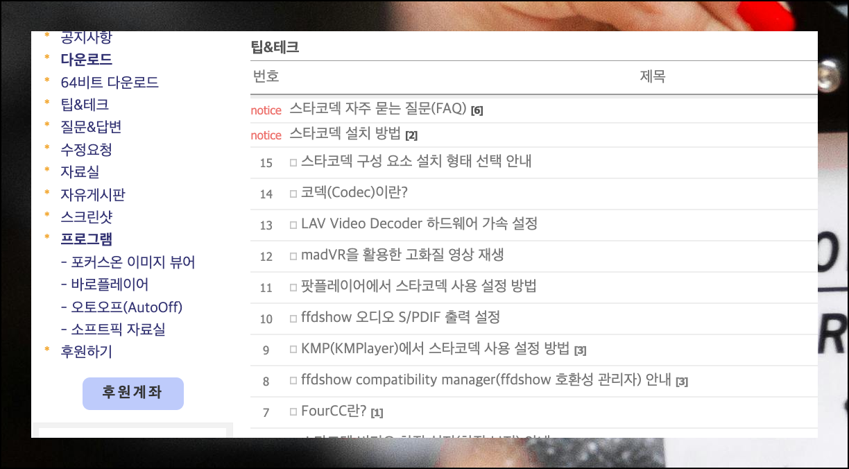 코덱 사용 중 문제가 생겼다면 팁앤테크 메뉴를 확인해보세요. 무료 설치 후 발생할 수 있는 다양한 상황별 해결책과 설정 방법이 자세히 나와있습니다. 여러 플레이어와의 호환성도 안내하고 있어요. 코덱 관련 궁금증을 해소할 수 있죠.