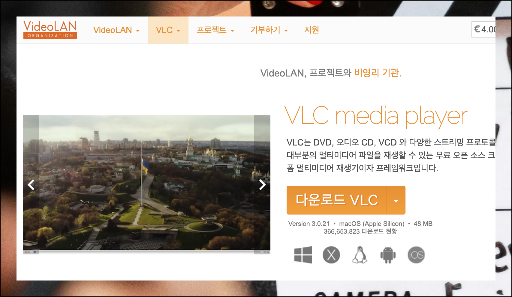 vlc는 여러 운영체제를 지원합니다. 윈도우부터 맥북, 안드로이드까지 가능해요. 동영상은 물론 음악 재생도 가능하니 활용도가 매우 높습니다. 별도의 코덱을 추가하지 않아도 모든 기능을 즐길 수 있어요.