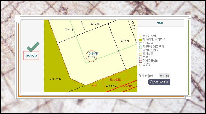 - 해당 지역이 어떠한 용도지역, 용도지구에 해당하는지