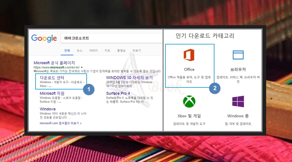 우선 프로그램 다운로드를 하는 방법을 알려드리겠습니다. 구글에서 검색하면 다운로드 센터가 있는데요. 여기서 Office를 찾아 클릭해주세요.