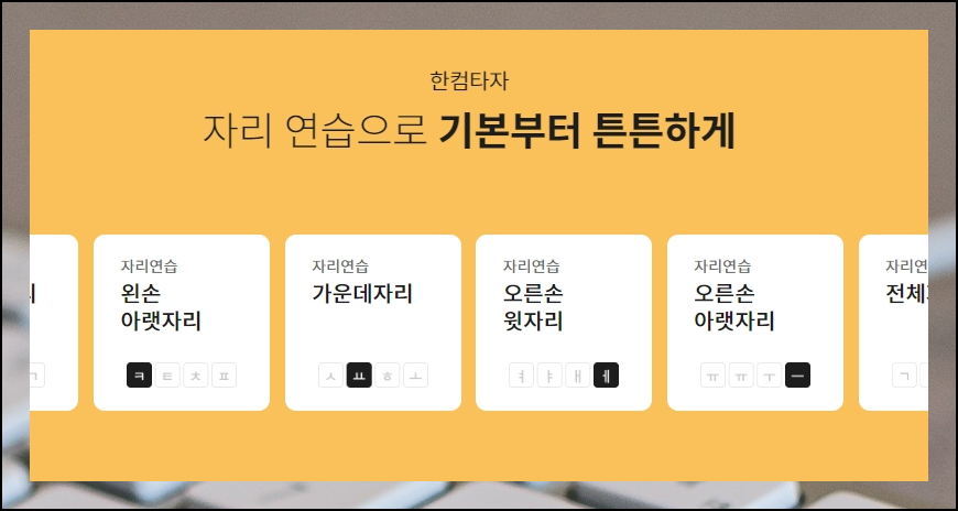 앞에서 두번째 프로그램에 대한 언급이 있었는데요. 한글타자연습 다운로드 버튼 아래에 보면 이렇게 연습 과정을 선택할 수 있는 메뉴가 있습니다. 여기에 있는 메뉴를 선택하면 무료설치 없이 바로 서비스를 이용할 수 있어요. 고퀄리티 게임은 없지만, 기본 기능은 충실한 서비스이에요.