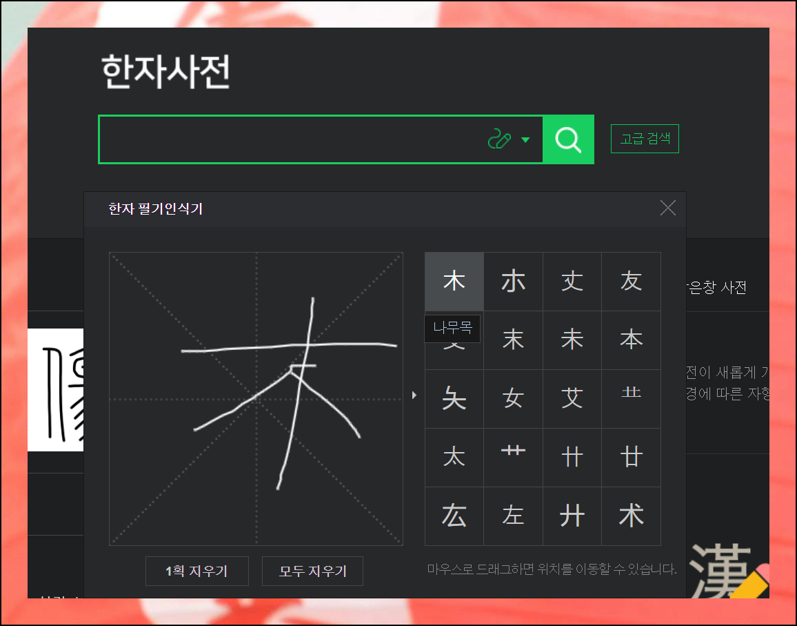 인터넷을 통해 제공하는 이 편리한 도구는 필기 인식 기능을 통해 마우스로 그리기만 해도 사전을 쉽게 찾을 수 있어요. 더 이상 한문 수업에서 배웠던 부수나 획수를 기억할 필요가 없어요.