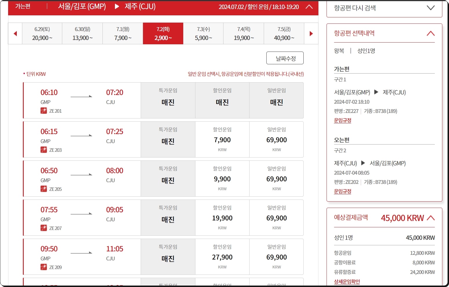 방금 찾은 티켓을 구입하는 사이트에 접속해 보았는데요. 특가는 다 놓치고, 할인 항공권의 경우에도 일부만 남아 있네요. 여름 휴가때 비행기를 이용하실거라면 서두르시는 것이 좋겠네요.