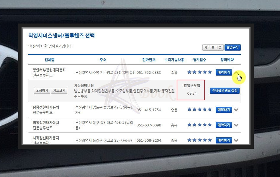 ▲ 현대자동차 블루핸즈 휴무일 확인하기