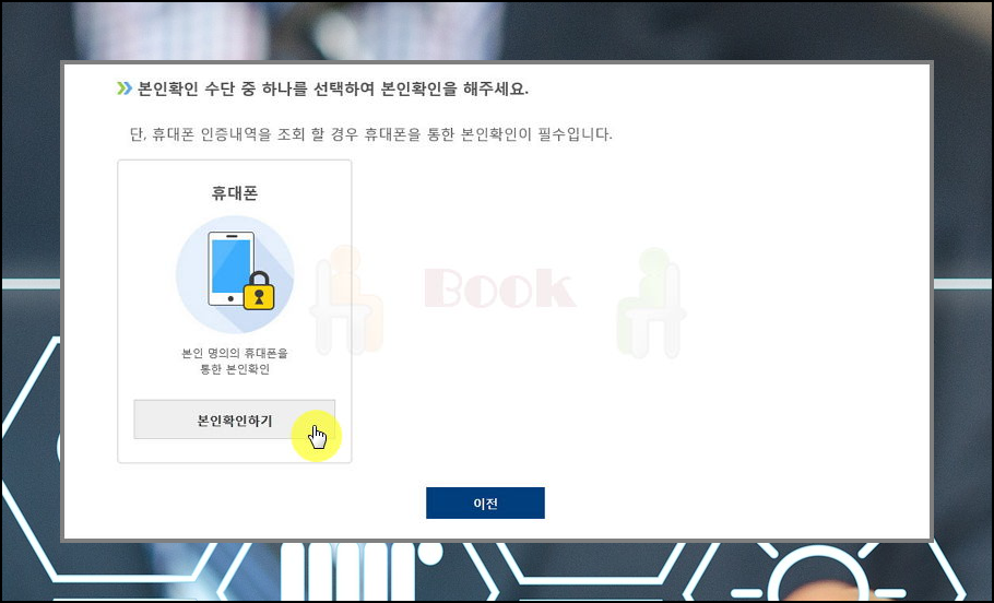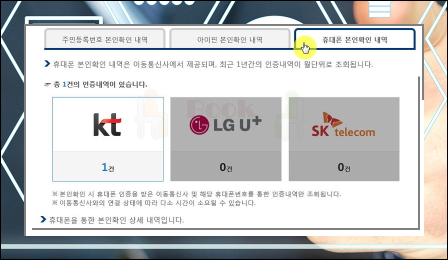 일단 사이트 조회를 위해서 본인 인증이 필요합니다. 본인 명의로 된 핸드폰을 이용해야지 인증이 가능합니다.