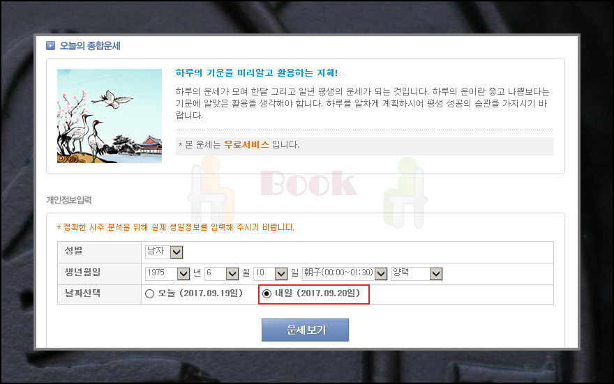 그다음으로 많이 찾는 신한은행의 역술은 오늘의 종합운세입니다. 오늘뿐만 아니라 내일도 미리 볼 수 있어요.