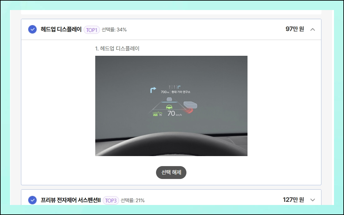 4단계의 간단한 절차를 통해 개인 맞춤형 견적을 완성할 수 있어요. 2025 신차 모델의 상세 사양을 결정하면서 추가 옵션도 선택해보세요. 다른 구매자들이 선호하는 옵션 조합 정보도 함께 참고할 수 있어서 더욱 현명한 선택에 도움이 됩니다.