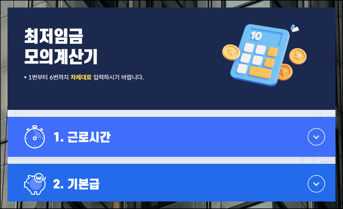 고용노동부 홈페이지 오른쪽에서 최저임금 모의 계산기를 찾을 수 있습니다. 누구나 쉽게 이용할 수 있도록 만들어져 있어서 처음 사용하시는 분들도 편하게 활용할 수 있어요. 이 계산법은 매우 직관적으로 설계되어 있답니다.