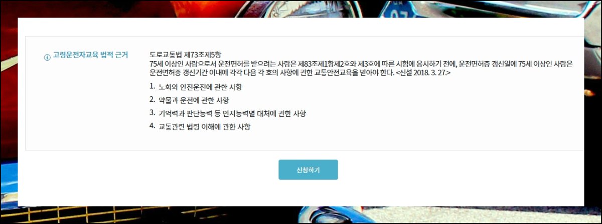 75세이상 고령 운전자는 교통안전 학습 플랫폼 사이트에 방문하시면 됩니다. 첫 화면에 고령 대상자를 위한 수업 등록 항목이 마련되어 있어요. 운전면허 적성검사 갱신 과정에서 빠질 수 없는 필수 단계이니 꼭 마쳐 주세요.