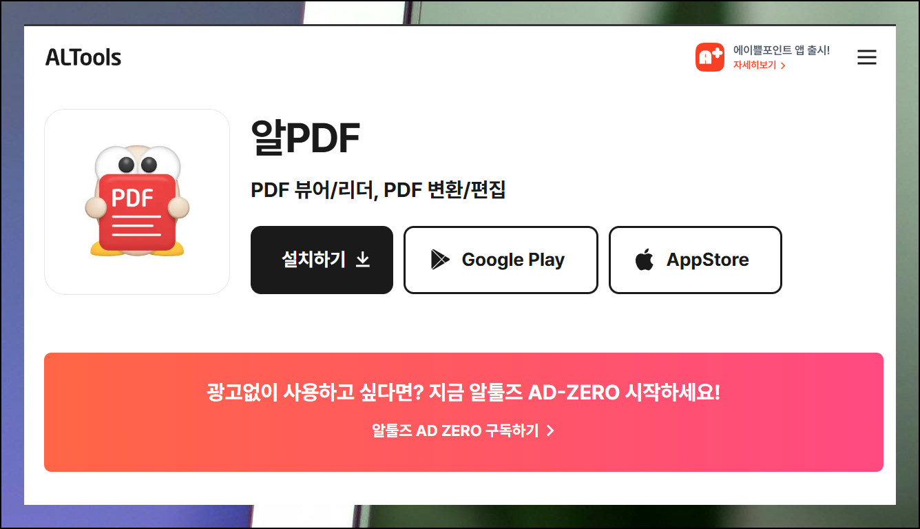 알툴즈는 단순한 변환 도구가 아니라 문서 편집까지 가능한 통합 솔루션 프로그램이에요. 홈페이지에서 다운로드 링크를 클릭하고, 설치 파일을 받아 실행하면 됩니다.