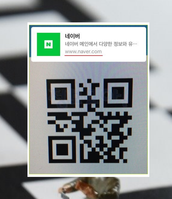 제가 직접 만든 QR코드를 가지고 스캔하는 것을 통해 알려드릴게요. 간단합니다. 스마트폰 카메라를 위치만 시키면 바로 위에 스캔한 결과가 나타나는데요. 여기에 제가 담아 놓은 네이버의 URL이 제대로 나타나고 있네요.